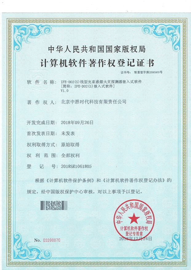 近日公司自主研发的新产品IFE-D02(S)线型光束感烟火灾探测器嵌入式软件、IFE-HD06高清图像型火灾探测器嵌入式软件获得中华人民共和国国家版权局颁发的计算机软件著作权登记证书。标志着我公司自主知识产权取得新突破,再创佳绩,充分展示了我公司高效的自主研发能力和持续的自主创新能力。
