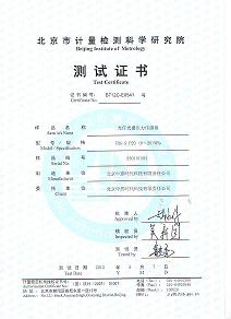 2012年5月7日,我公司自主研发的光纤光栅压力传感器顺利通过了北京市计量院的测试,并获得了测试合格证书。此合格证书的取得,证明我公司的光纤光栅压力传感器可对各种大坝、隧洞等的压力进行实时监测。