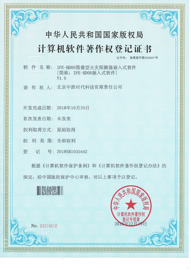 近日公司自主研发的新产品IFE-D02(S)线型光束感烟火灾探测器嵌入式软件、IFE-HD高清图像型火灾探测器嵌入式软件获得中华人民共和国国家版权局颁发的计算机软件著作权登记证书。标志着我公司自主知识产权又创佳绩,充分展示了我公司高效的自主研发能力和持续的自主创新能力。