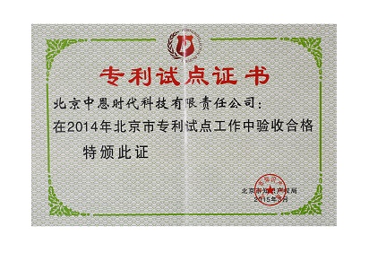 北京市专利试点企业证书
